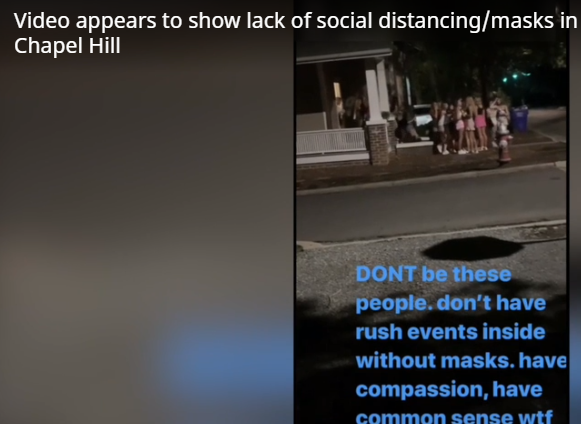 目前疫情引人关注的要点之一就是美国各地不同程度的复学情况,有500多个学区开始了面对面的授课。昨日新闻,北卡大学教堂山校(UNC-Chapel Hill)在复学1周之后,新冠确诊率上升一倍,接近13.6%。超过300余位师生和员工确诊,近日就增加130多人。当地报纸报道,有录像爆出学生们违规进行派对聚会,并且不按照要求戴口罩和保持社交距离。