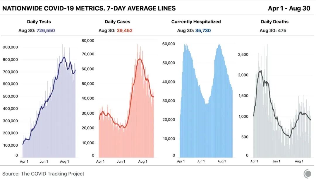 美国还远远没有打败新冠,但是对新冠病毒的脾气有了更多的了解,应对的武器和策略在增多。留下的教训和总结,不同的人会有不同的切入角度,而此文主要是给大家提供一些数据参考。