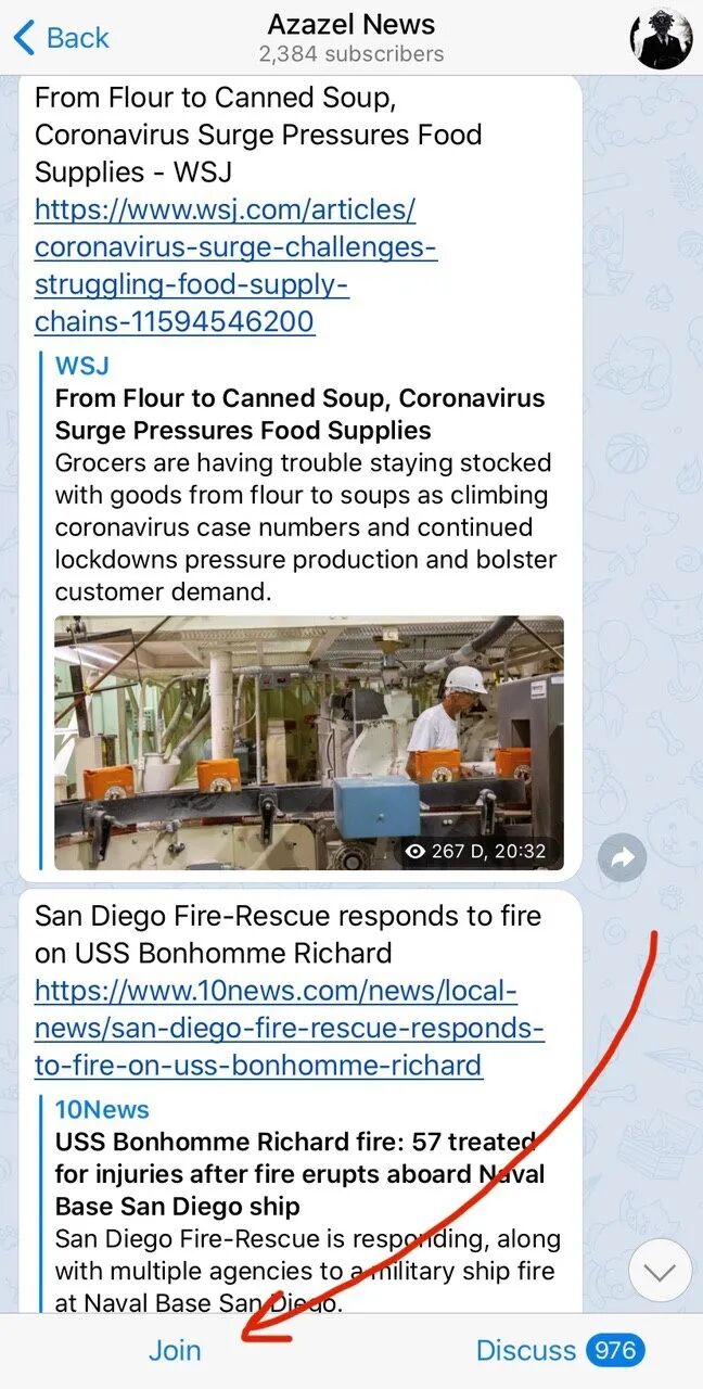 选择下方的join(红箭头所指),就成功订阅了一个新的频道了。
