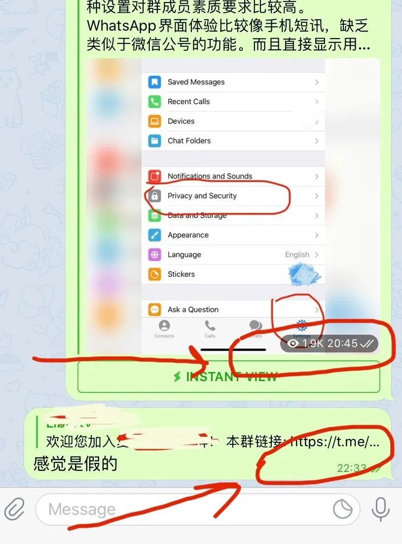 Telegram加群(下载app修改privacy设置;拷贝群地址用浏览器打开(微信打开无效);点击“join/进入”):