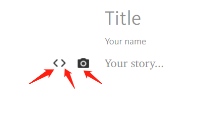 点击相机标志就可以插入图片;点击上图第一第二个红箭头所指的黑色左右符号,就会跳转到新的提示,让作者插入视频、推特等各种连接:
