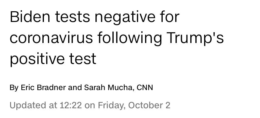 拜登因周二与川普同台辩论,今天也做了检测。美东时间中午后,拜登夫妇公布都是阴性的结果。