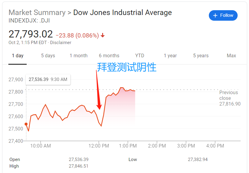 这个消息立刻带来本来道琼斯指数跌了400多点的股市,大幅拉升回归正常。