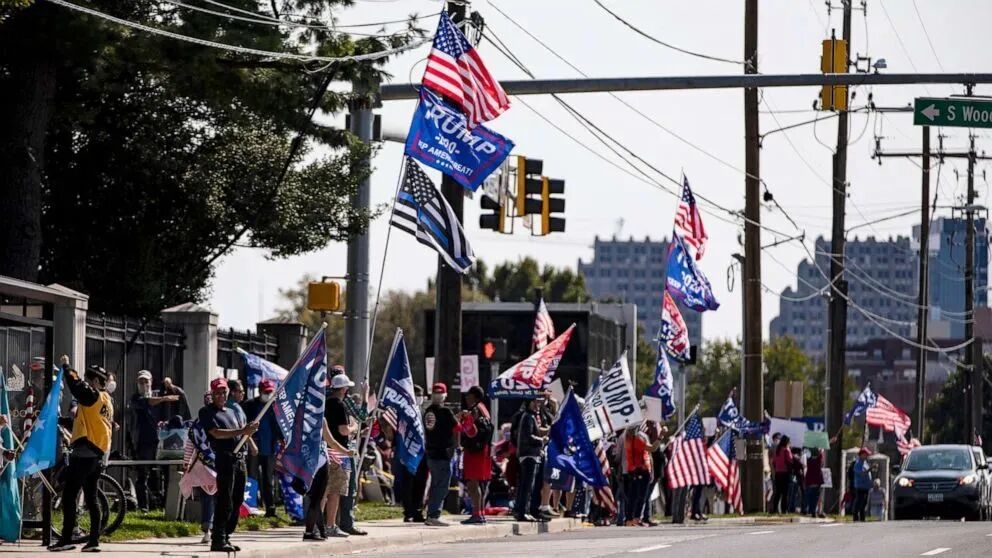 川普住进离白宫15英里的沃尔特·里德国家军医医院(Water Reed National Military Medical Center)之后,这几天都有很多川普支持者,去医院外给他鼓劲祈祷。