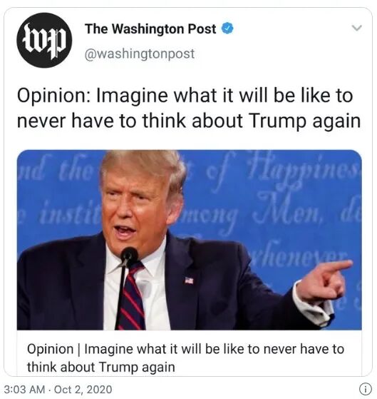 《华盛顿邮报》的评论文章甚至暗示川普死。曾经名震四方的华邮发出这种内容的文章,妥妥地在操作煽动读者的仇恨情绪。