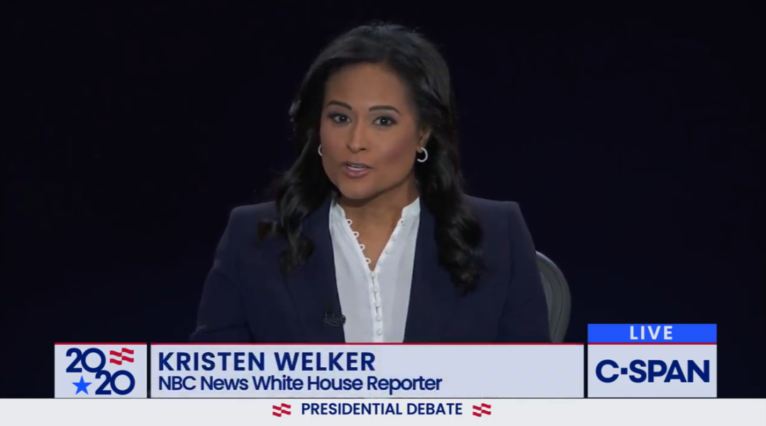 辩论主持人为44岁的克里斯汀·韦尔克(Kristen Welker),她在费城长大,1998年毕业于哈佛大学历史系,是NBC电视台的白宫通讯员和“今日周末”节目的联合主持人。