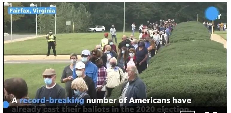 今年的大选,美国现代历史上第一次早投票人数超过选举当日投票人数。占2016年总投票人数73%的人已经在11月3日之前投票。
