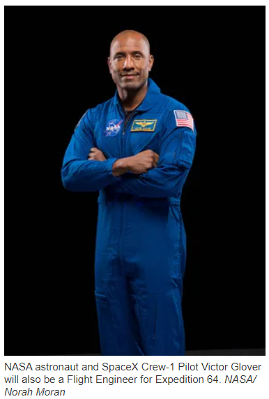 二号人物是船长维克多·格洛弗,是加州人。格洛弗格外期待自己的首次太空飞行任务。这位非裔帅哥当年从加州州立理工大学通用工程学获得学士学位后,又攻读了航空大学飞行测试工程学硕士、海军研究生院系统工程学硕士及航空大学军事作战硕士。格洛弗是一名海军飞行员,44岁的他也是本次飞行中最年轻的宇航员。
