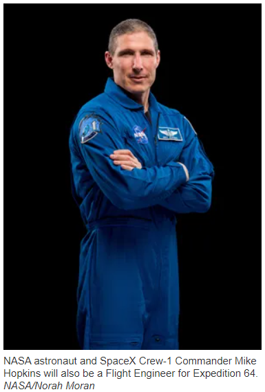 本次任务被命名为“1号船员(Crew-1)”,四位美国国家航空航天局的宇航员分别是,迈克·霍普金斯(Mike Hopkins),维克多·格洛弗(Victor Glover),香农·沃克(Shannon Walker)和日本航空航天局的宇航员野口聪一(Soichi Noguchi)。