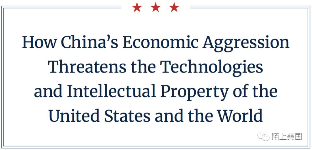 在川普宣布给中国500亿美元商品施加关税后的第二天,美国白宫贸易和制造业政策办公室颁布了一项长达35页的报告,用到“经济侵略战略”一词来描述中国的高速经济发展,并把中国列为美国经济乃至全球经济的威胁。
