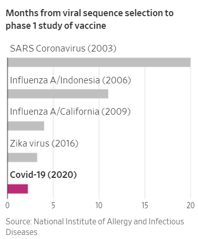 从拿到病毒序列到进入一期试验(月)