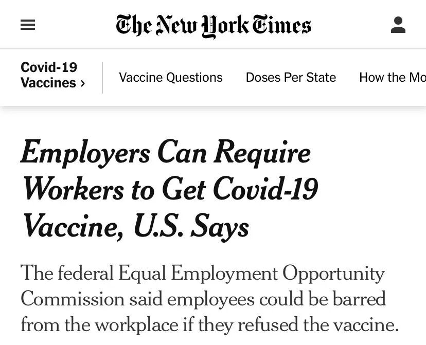 本周联邦政府的抗议指南更新中指出,雇主有强制雇员接种疫苗的权利,否则将可以禁止不接种疫苗的员工去上班。