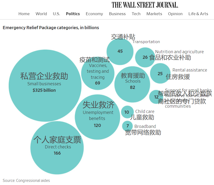 该美国历史上最大的经济救济法案花费2.1万亿美元,占美国GDP的10%。全美有数千万个家庭从中受益,保障经济停转期间获得基本的生活费。(点击前文)