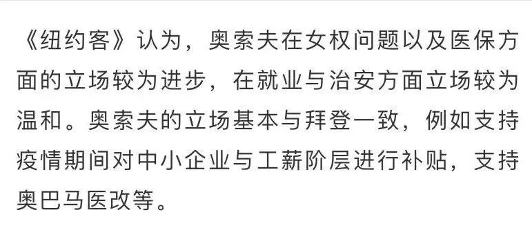 那么在涉及奥索夫到底有哪些时政纲领介绍的时候,整个几千字的文章只看到这么一段,比夸他帅还吝惜墨水: