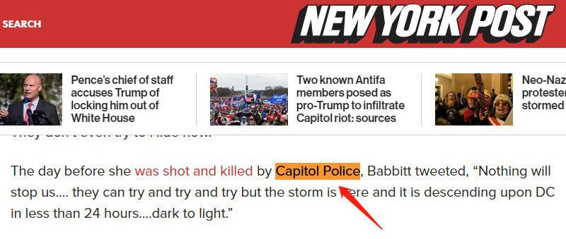 而且,被美国主流定义为是“暴徒冲击国会”的这次事件,真正出事的一方都是抗议者,国会大厦警方则无人牺牲。(发稿后新闻说有一警察周四去世详见置顶)