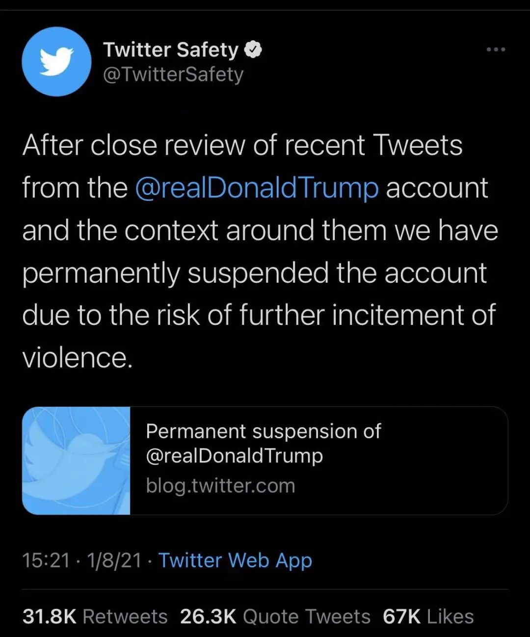 川普的推特被销号,8800多万粉丝,多年的记录,永远消失。这恐怕算信息世界最高规格的“秒杀”。今天让人见识企业垄断的厉害。