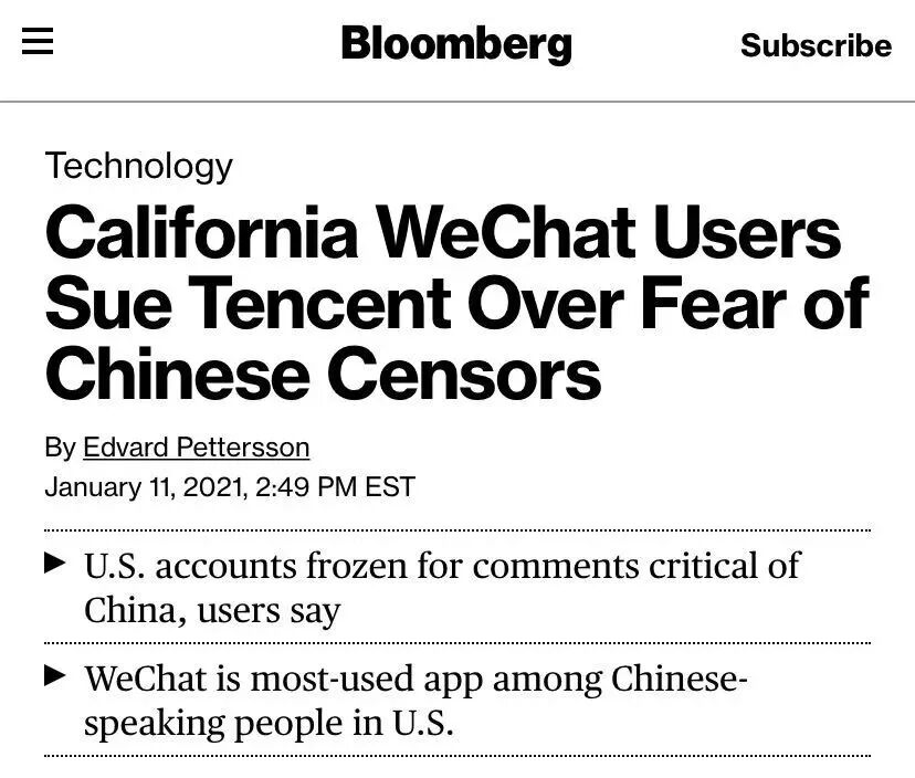 不过,帮助微信打官司的反川华人也别为Parler被苹果、谷歌、亚马逊三家围猎干死而高兴得太早,谁也保证不了next in line的不是你。