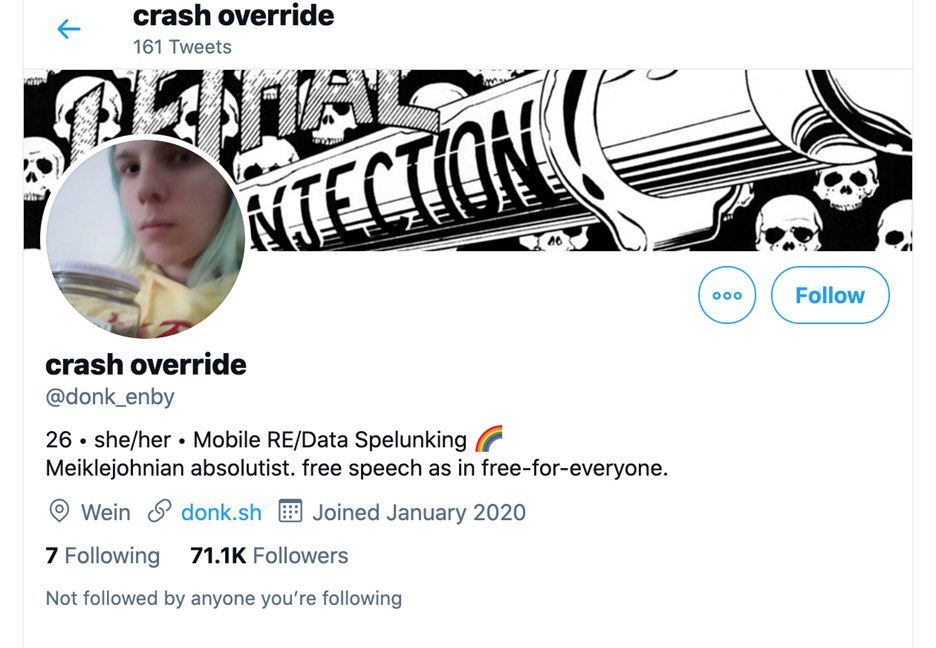 就像donk_enby的推特账号在媒体报道之后粉丝疯涨,而她本身也频繁出现在各种媒体的报道之中。媒体正在把她一边倒的塑造成一个黑客的典范代表,但这显然是不理智的。