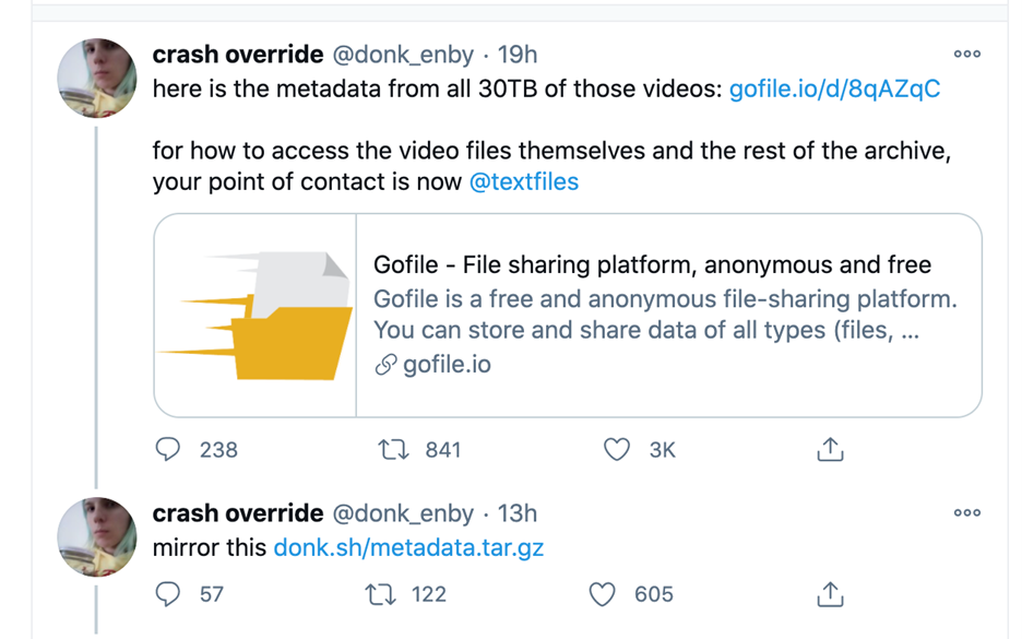 详细的报道可以在这里看到(https://cnet.co/3nDL6OM)根据其中一位主要黑客donk_enby的推特,他们最终窃取共计近80TB。