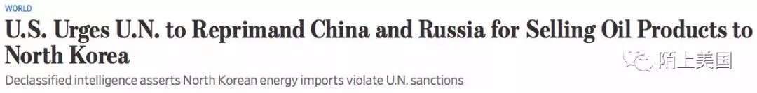 根据《华尔街日报》、CNN等媒体的最新报道,美国向联合国提出申诉,要求就中国、俄罗斯违反国际社会协定,向朝鲜出售石油及相关产品的行为作出惩罚。