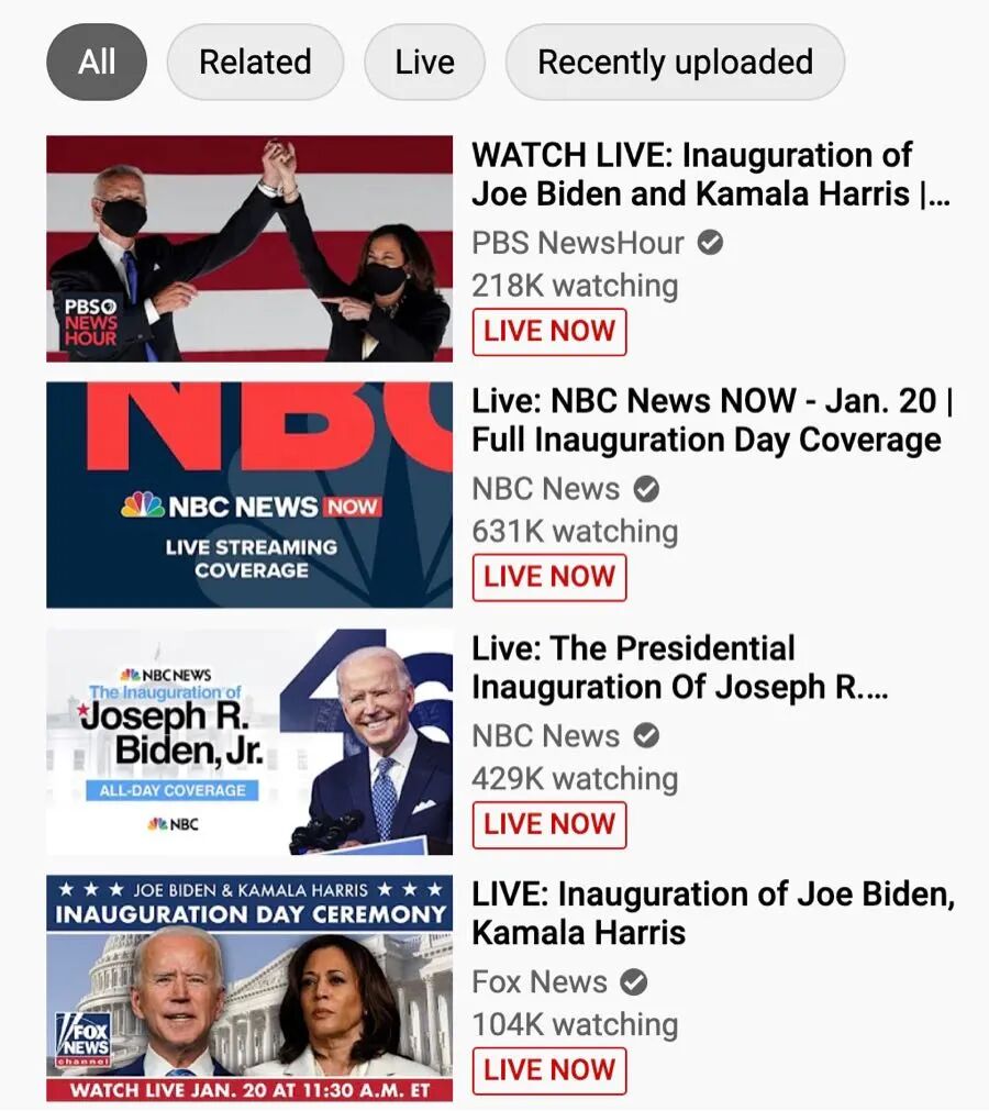 如果说是因为疫情导致大家撤销聚众活动改为上网观礼,那么一个“8000多万人投出来的美国历史上获得选票最多”的总统,看他就职典礼的在线人数应该很热闹。