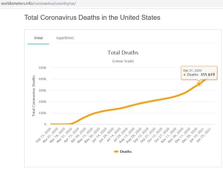 而美国2020年因为Covid-19病毒死亡的人数总计35.6万人【2】。