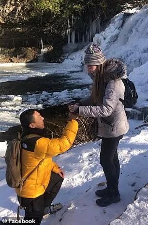 时间到了他们相识一周年的纪念日,在冰雪覆盖的郊游公园,朋友的相机记录了凯文向佩里求婚的动人一幕。