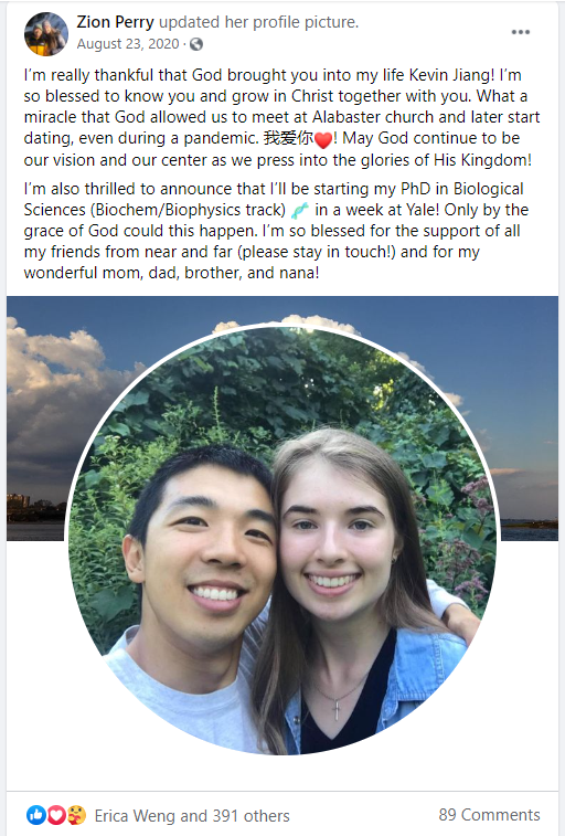 两人双双在脸书上更新了自己的信息,向亲友们宣布这一喜讯。
