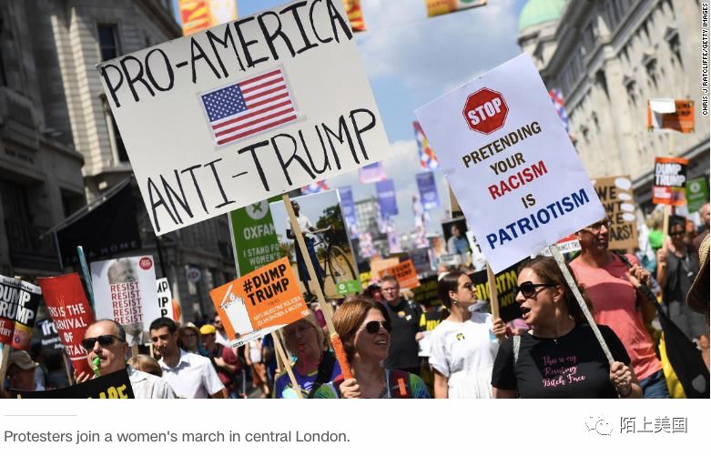 连之前5月份的英国皇室婚礼,美国明明是娘家人,而且输出的还是第一位非裔皇室成员,这种历史性的突破都没总统啥事。谁让这轮是川普——这个被乌泱泱的伦敦人不待见的做了总统?