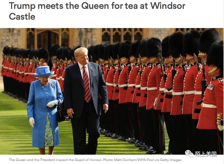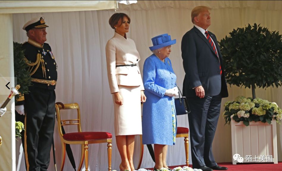 现在,川普正跟英国女王见面喝下午茶,今晚将去苏格兰。