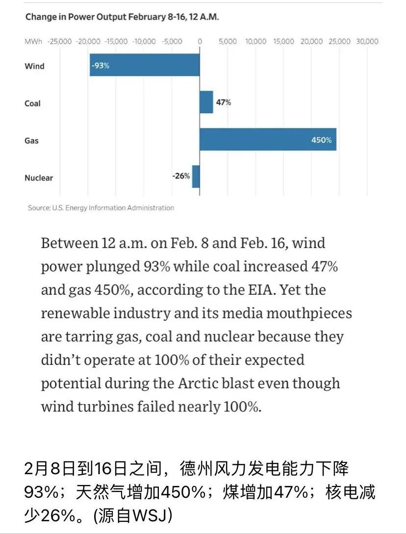 这种说辞明显回避了矛盾所在,就是风能的季节波动很大,这本身就是个大问题,正常冬天发电能力减产都会在50%以上。遇到德州百年一遇的极端气候,更是差点交白卷,仅仅残留了7%的发电能力。深度暴露了风能的间歇性。