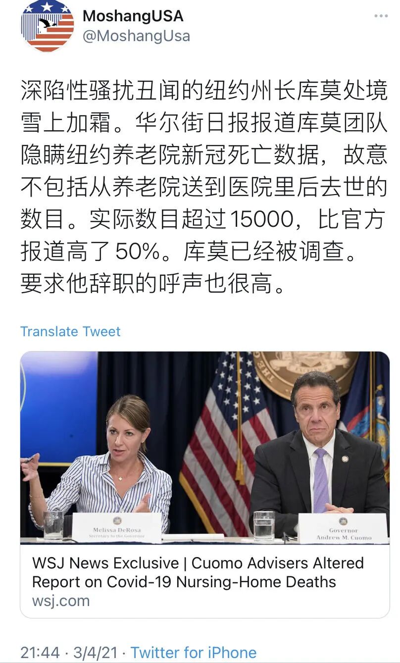 错误的政策,给库莫带来压力。何况波及影响的,是一个个活生生的生命。根据华尔街日报和纽约时报的报道,库莫团队在养老院死亡数据上作假,其高级助理少报了大概50%的死亡,实际可能超过15000人。