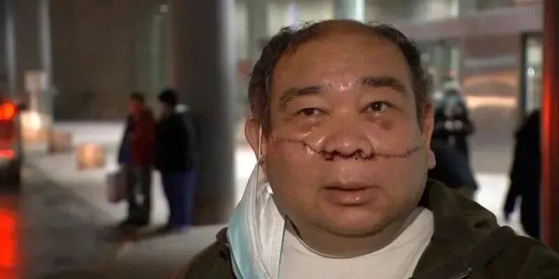 二月三日,一名亚裔男性在纽约搭乘地铁时遭到一男子无故持刀攻击,凶手几乎把这名受害者的脸一分为二,他足足缝了100多针。