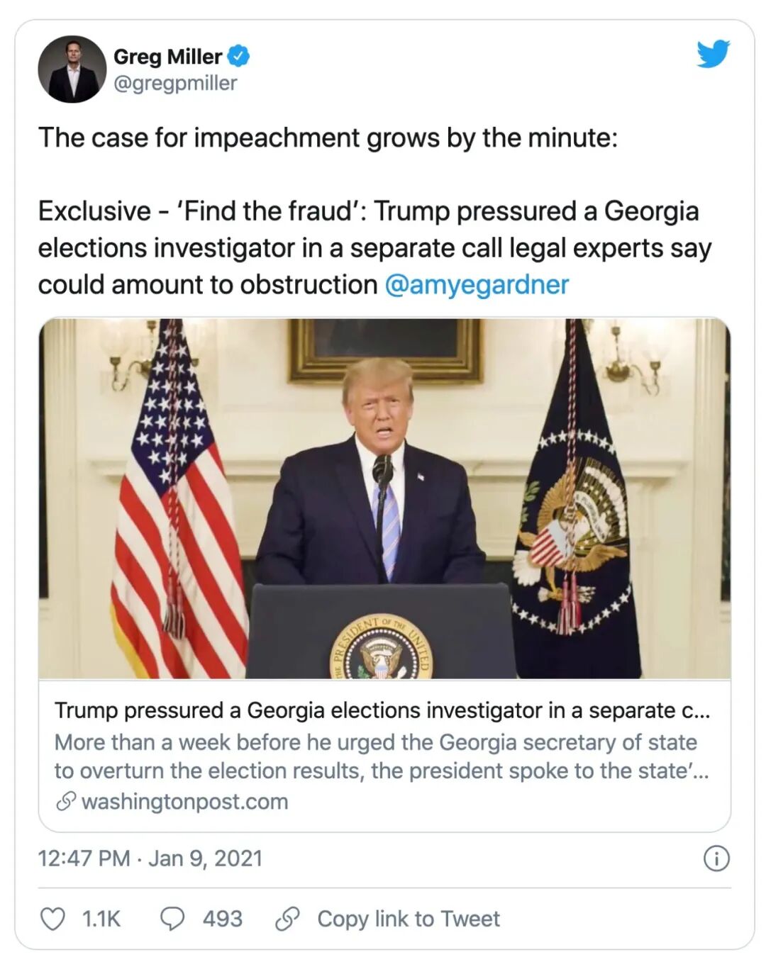 众议院民主党人在发起第二次弹劾的报告中,就引用了川普的这个电话内容——现在发现是伪造的,作为依据。