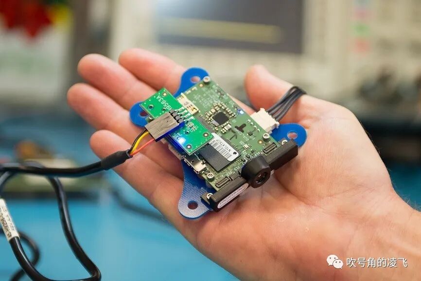 它完全依靠集成在惯性导航系统中的跟踪摄像头,跟踪图像特征而获得的速度估算值,用导航算法来计算,最后通过高通处理器连接到两个飞行控制微控制器单元(MCU)上,最终实现自主导航飞行。