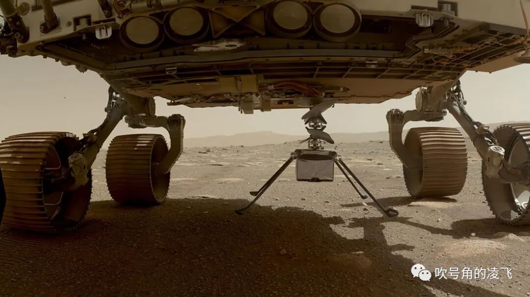 2021年3月30日,即火星飞行第39天,“机智号”从“毅力号”的腹部部署到地面。