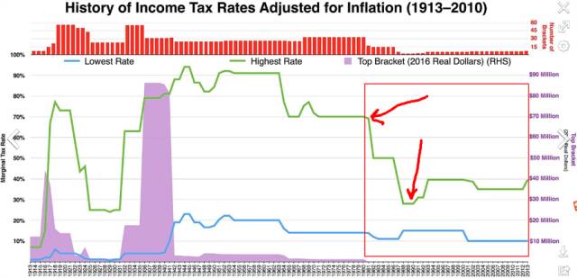 但是80年代的经验,并没有证明给高收入的减税,对中低收入人群的经济改善有必然相关性。