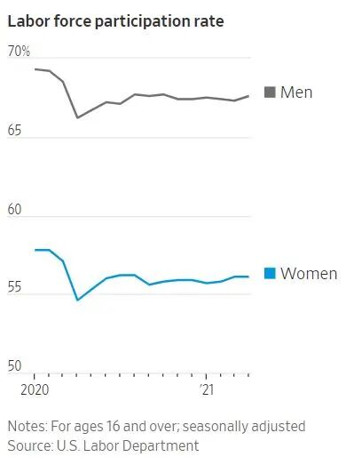 原因包括,政府失业救济的扩大让一些人没有工作的动力,上班反而不如拿救济收入高;学校关闭,需要有人在家照顾孩子;此外,一些人因担心感染Covid-19病毒而不出来工作。