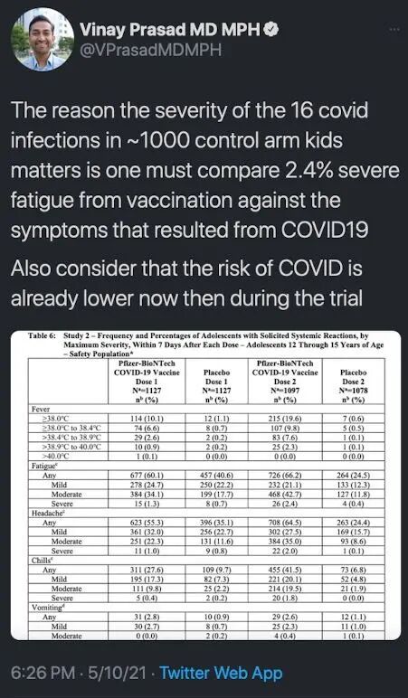 只是考虑到,病毒对这个年龄段的孩子带来的风险并不比流感高太多,而这款是缺乏长程副作用数据跟踪的紧急授权的疫苗,前面也分析了对孩子的短期副作用已经比成人显著。