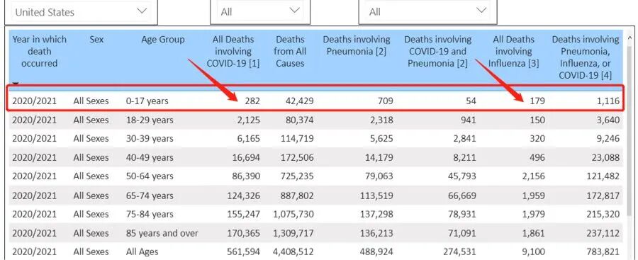 当然有人会提出质疑,考虑到过去一年大部分K-12基础教育采取上网课,极大避免了儿童的社交接触、传播病毒的可能,因此这个数据并没有完全体现Covid对未成年人的风险。但是要考虑到,全美的私立学校,还有多个红州,在过去一年中孩子们照常上学,而他们的数据并没有显示出新冠病毒对孩子威胁严重。