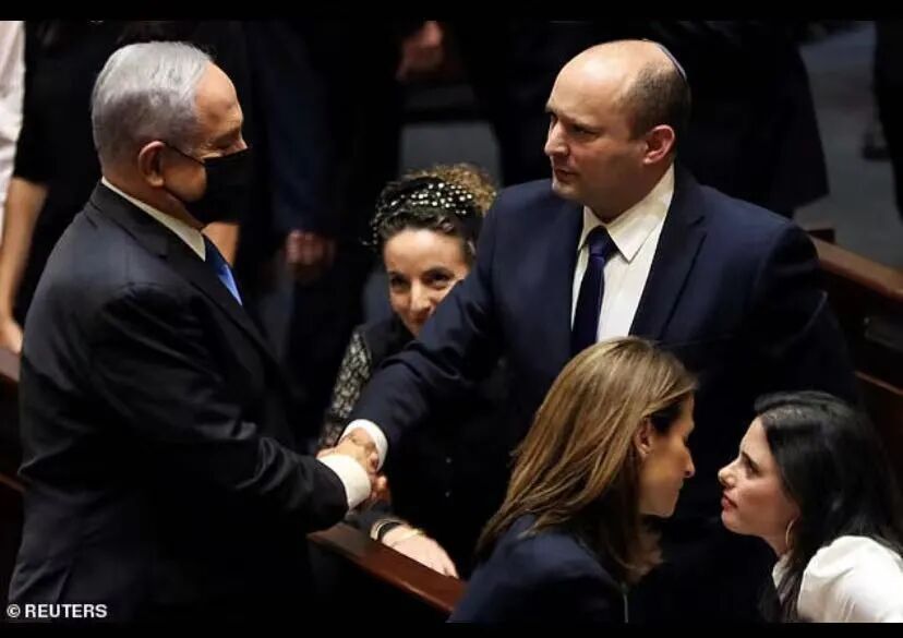 内塔尼亚胡在败选后发表的讲话上,尖锐批评贝内特,抨击他以坚挺右翼形象出道骗选票,却又跟左翼结盟,认为他不会有勇气也没有能力对现在的美国拜登政府说不。
