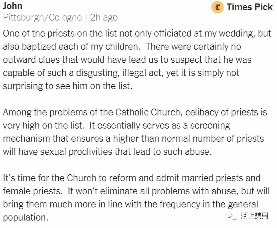 《纽约时报》报道,根据宾夕法尼亚州一陪审团周二的报告,当地天主教教会爆出惊天性侵丑闻。