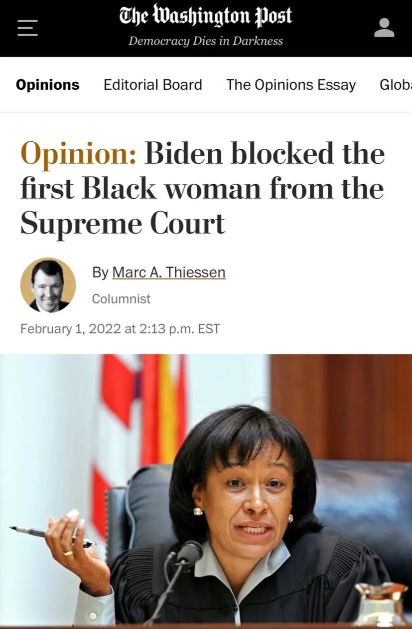 即使是华盛顿邮报,这个左翼媒体都发文承认,拜登是阻挡过,而非首次提名非裔女性大法官的人。