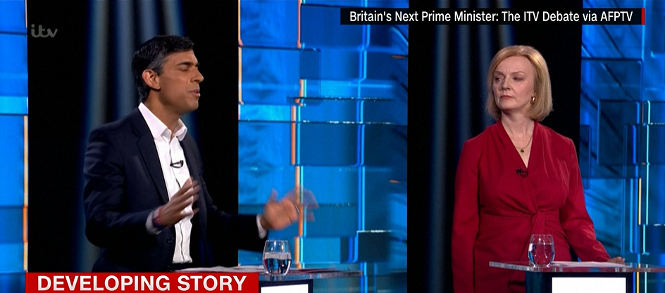 苏纳克主打“经济现实主义”牌。他反对在英国处于40年以来最高位的通货膨胀阶段减税,并抨击对手特拉斯的经济计划依赖于借债,这将埋下长远的定时炸弹。