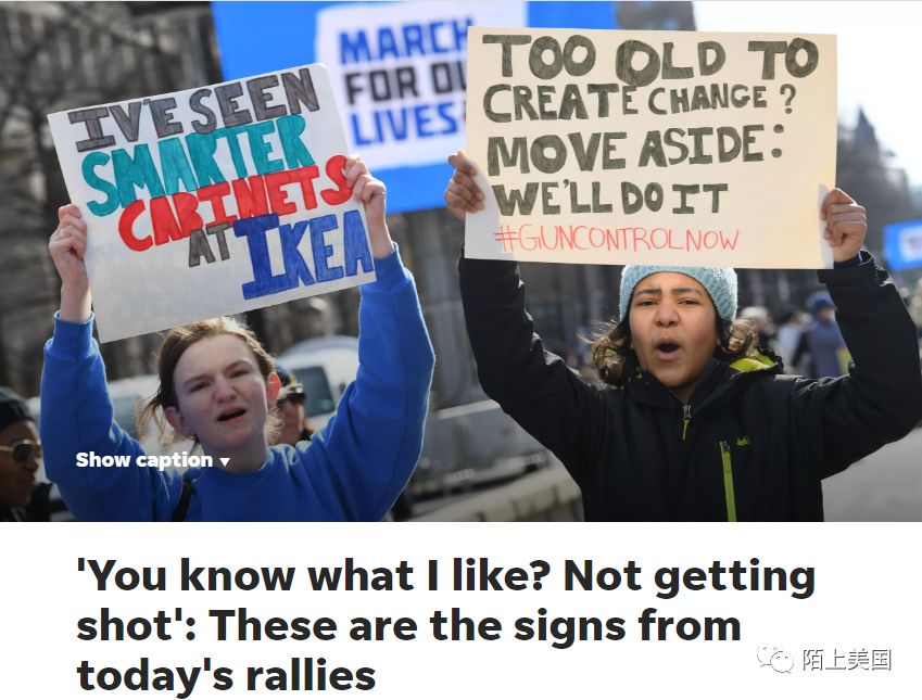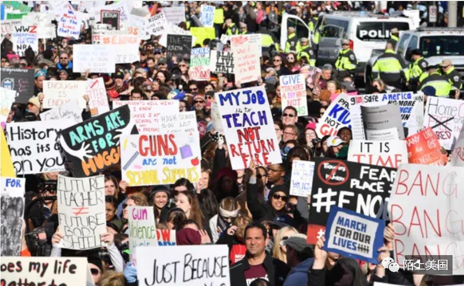 1. 今日全美各州共同举行“March for Our Lives”(为了生命控枪)大游行