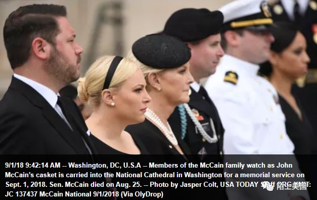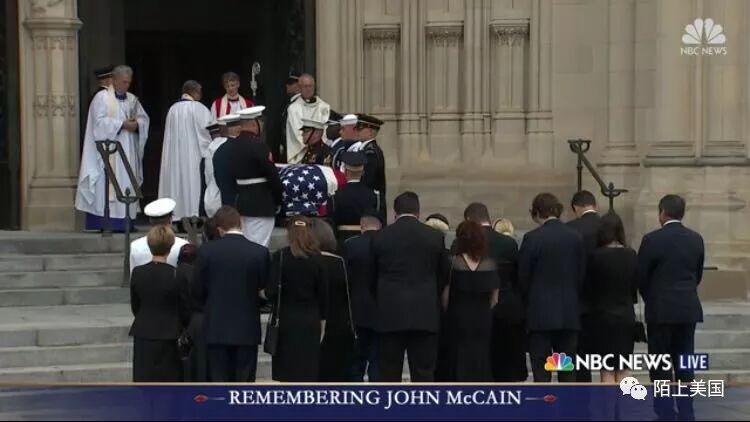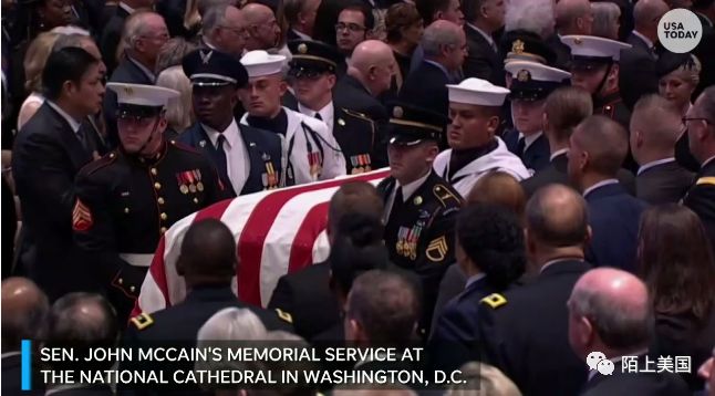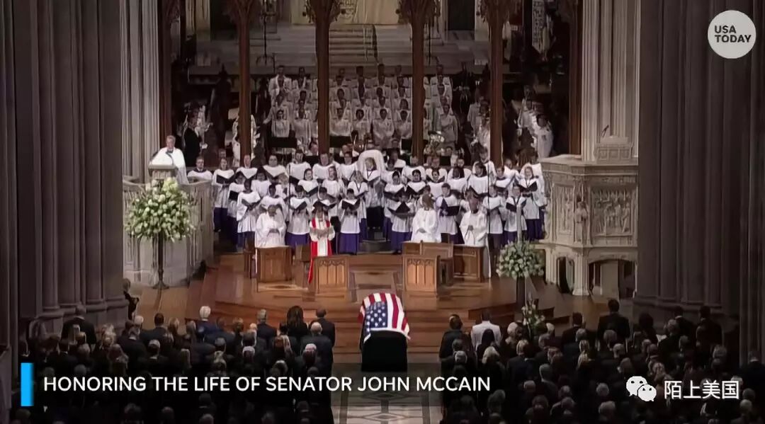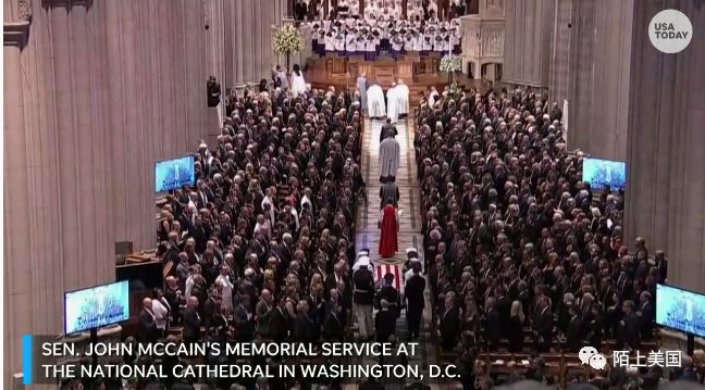 今天在华盛顿国家大教堂,美国举行国葬,向参议员麦凯恩告别。美国各大媒体都在现场直播整个过程。