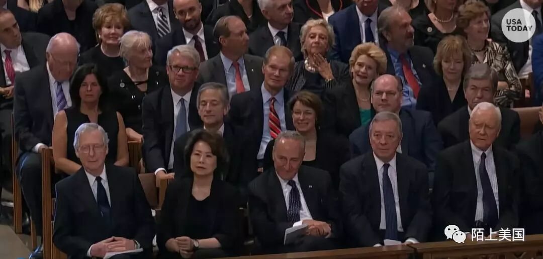 出席的人员还包括参议院多数党主席米奇·麦康奈尔和夫人交通部长赵小兰。参议院少数党领袖查克·舒默,和众议院议长保罗·瑞恩也参加了葬礼。