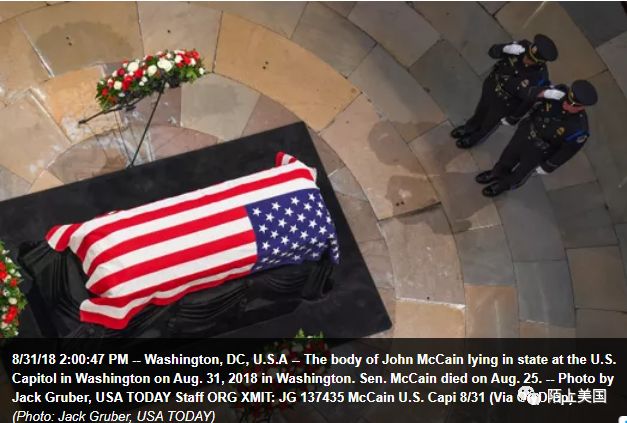 过去3天,麦凯恩的遗体被安置在国会大厦,以纪念他作为战争英雄、参议院雄狮和国家价值范例代表的地位。美国自1852年以来,包括林肯总统等在内,仅有32人获得此殊荣。