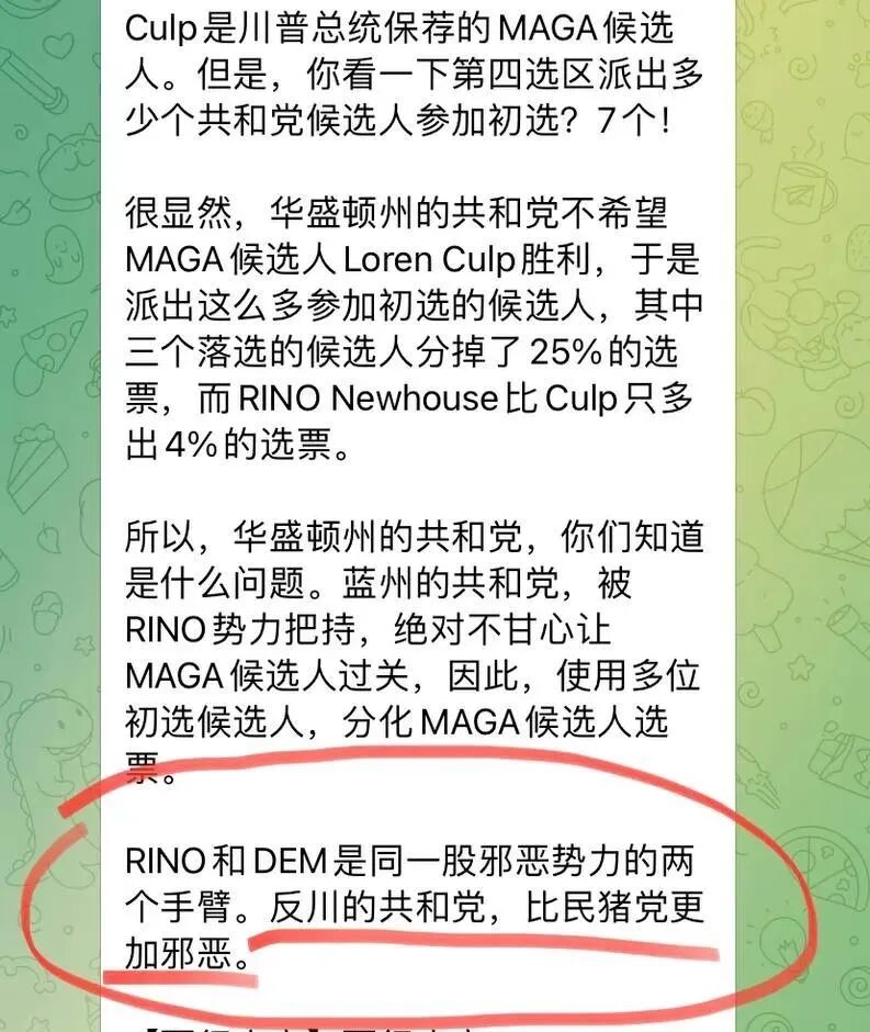 不过也注意到有些混在右派里的背景复杂的平台,经常传播一些叙事中夹杂一些过度发挥观点的信息,比如这个“反川的共和党比民主党还邪恶”。