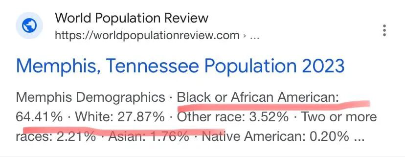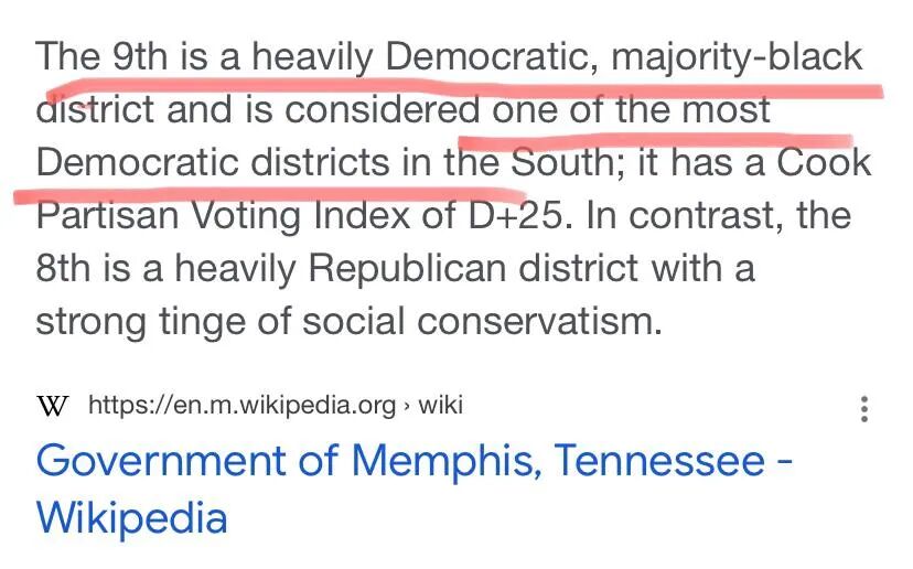 参考一下事发当地田纳西孟菲斯的一些基本情况,非裔人口占到65%,民主党控制的区达到3/4。维基百科如是写着:“占孟菲斯大部分面积的第九区,非裔人口相当集中,是南方民主党人口比例最高的区。”